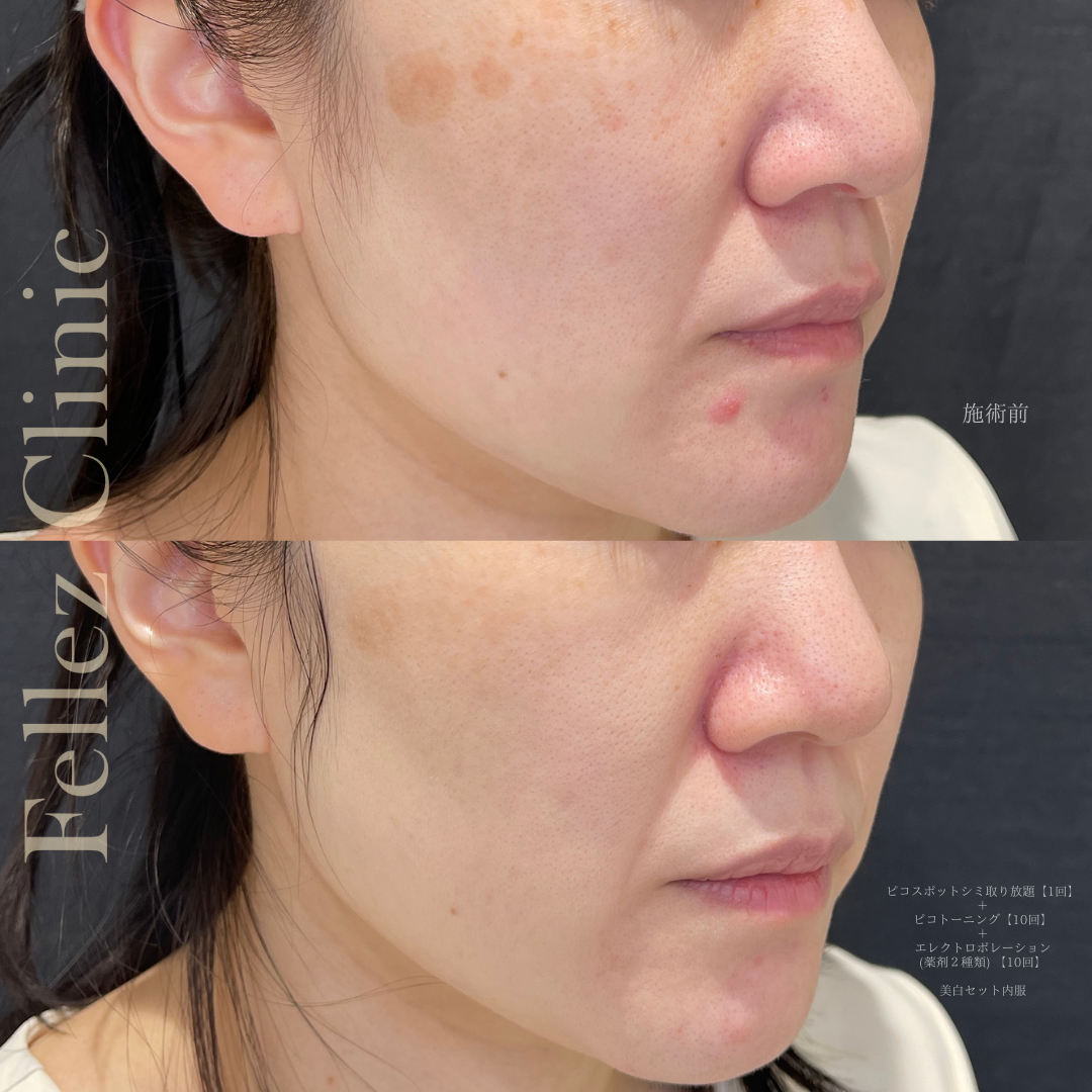 ピコスポット(シミ取り放題)1回+ピコフラクショナル+ピコトーニング+エレクトロポレーション(薬剤2種) ① 左側 10回コース後