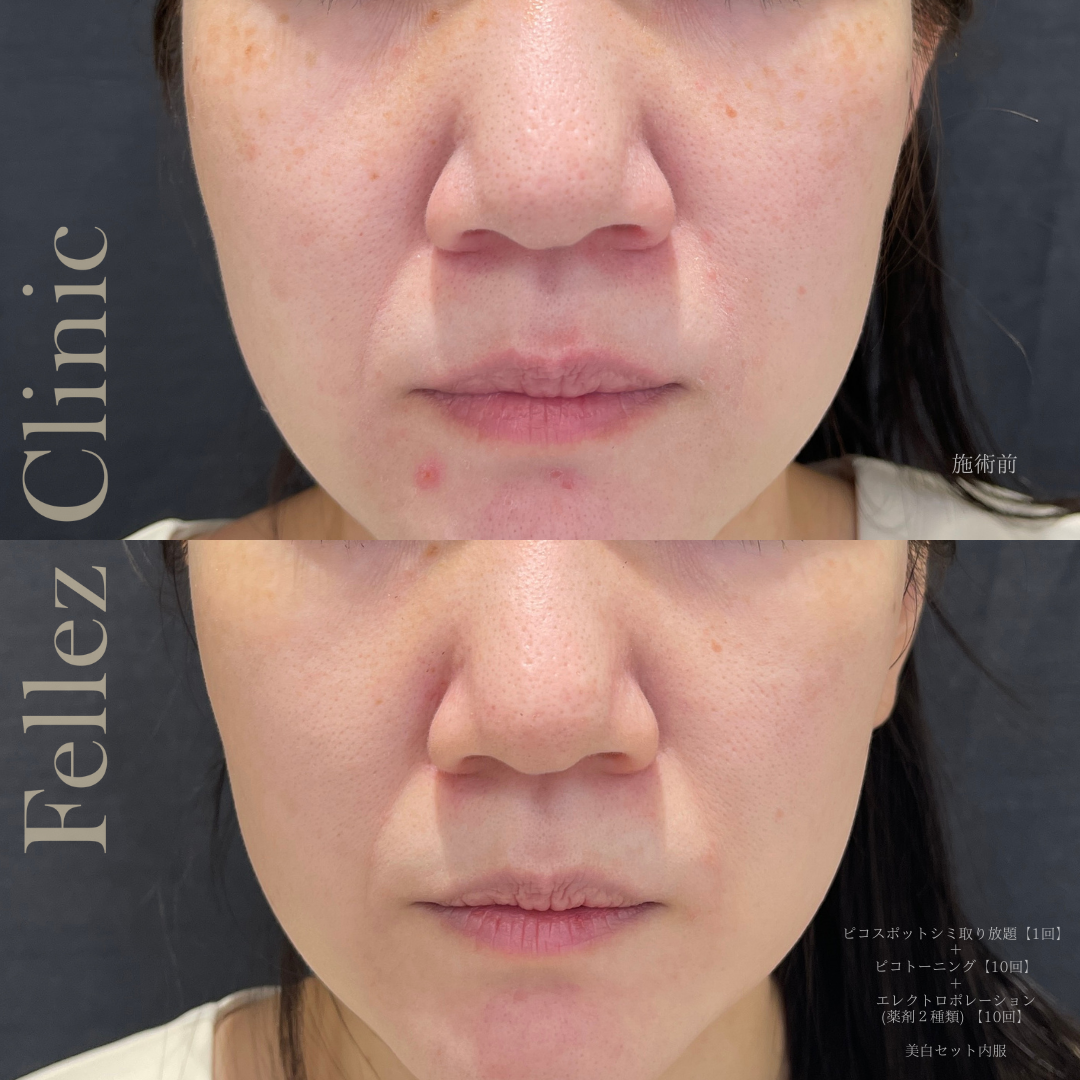 ピコスポット(シミ取り放題)1回+ピコトーニング+エレクトロポレーション(薬剤2種) ❶ 正面 10回コース後